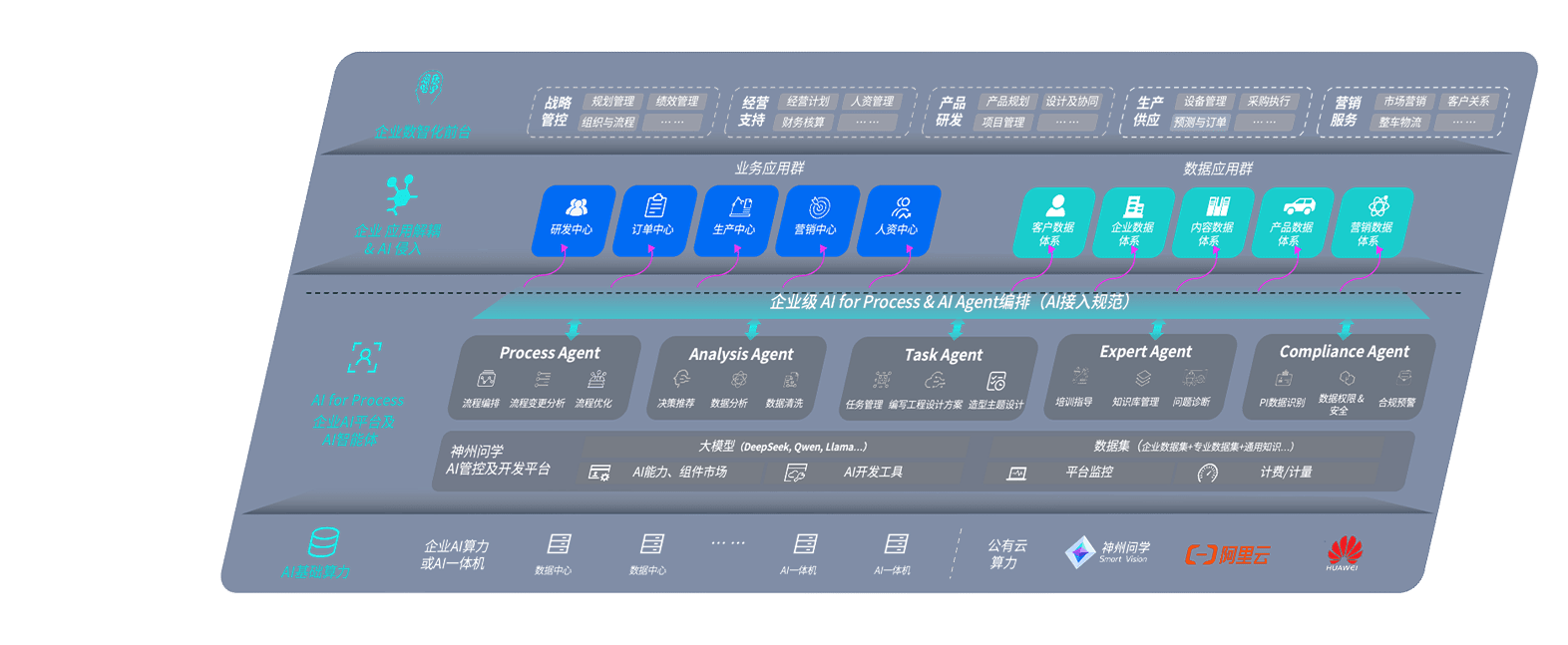 端到端的一站式AI工作空间深度融合了从企业战略规划到日常经营的全流程业务板块,,定向解决车企内部领域多、、、、部门多、、、、链条长、、、、场景碎片化等难题,,支持车企快速构建以AI为核心的生产力写作体系,,,,实现任务执行与AI能力的无缝集成与交互